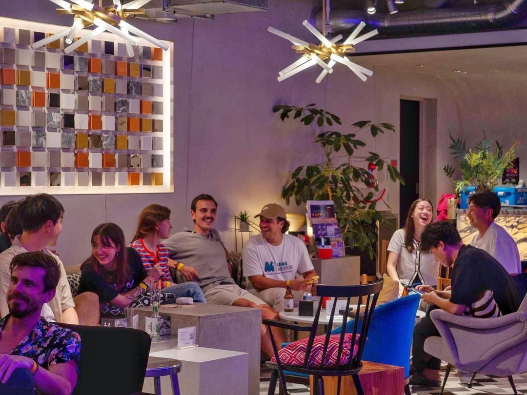 We take pride in being a hybrid space. Our pod-style hotel floors welcome travelers and nomadic workers from all over the world. During our all-you-can-drink happy hours, the hotel lounge transforms into a vibrant social hub. Our co-working members are always welcome to join, connect and enjoy the lively, friendly atmosphere.